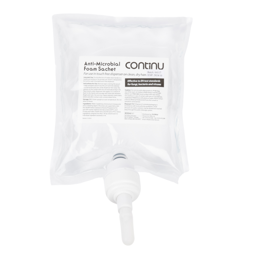 - Home Grown: Manufactured entirely in the UK, reducing eco miles and ensuring full regulatory oversight. Continu Hand Sanitising Foam delivers dependable antimicrobial protection with a reduced environmental footprint.